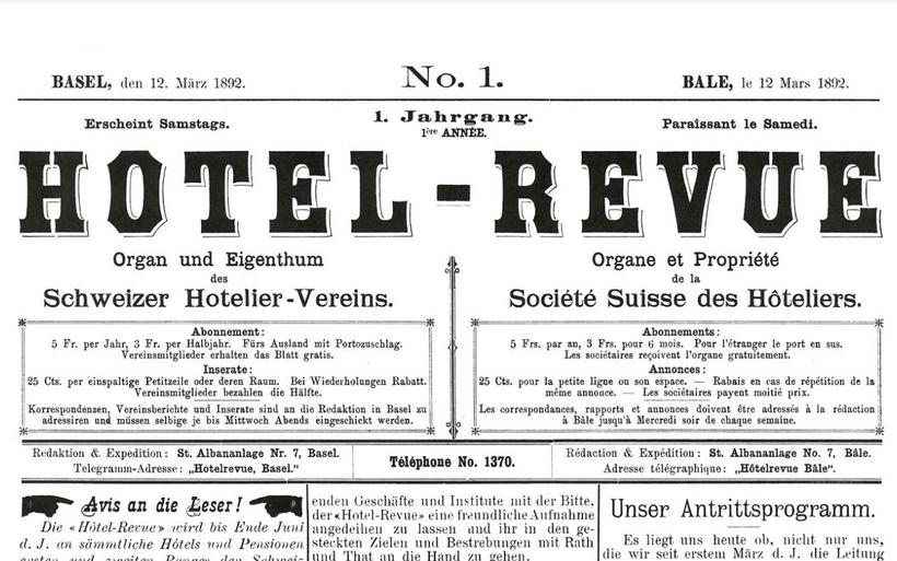 Die 1892 erstmals erschienene Hotel-Revue feiert ihr 130-jähriges Jubiläum. Zu diesem Anlass picken wir aus dem Archiv die interessantesten und unterhaltsamsten Themen und Geschichten, ordnen sie ein und spiegeln sie an aktuellen Geschehnissen.