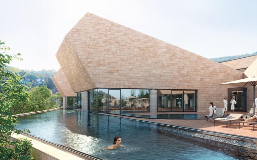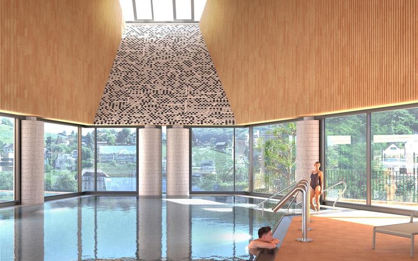 Auch Stararchitekt Mario Botta hat sich die Namens-Enthüllung nicht entgehen lassen und den anwesenden Gästen aus Politik und Medien Visualisierungen seines neuesten Bauwerks gezeigt und bisher unbekannte Details verraten. So wird die Zahl 47 auch in Mosaiken im Innenbad zu bestaunen sein. Dieses fügt sich optimal in den eleganten Stil des rund 160 Meter langen Hauptkörpers mit dem vorgelagerten, flachen Bau, aus dem fingerartige Öffnungen in den Himmel ragen, ein.