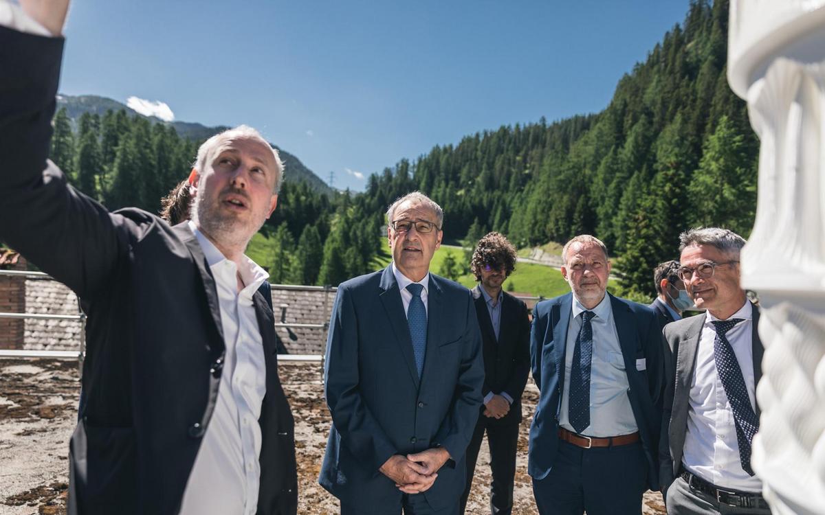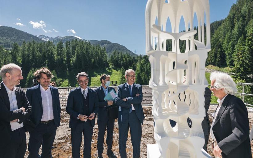 Am Dienstag wurde das Projekt feierlich von Bundespräsident Guy Parmelin, Mario Cavigelli, Regierungspräsident von Graubünden, Detlef Günther, Vizepräsident für Forschung der ETH, und den Architekten Benjamin Dillenburger und Michael Hansmeyer sowie den Gemeindepräsidenten der Regionen Albula und Maloja in Mulegns präsentiert der Öffentlichkeit präsentiert.