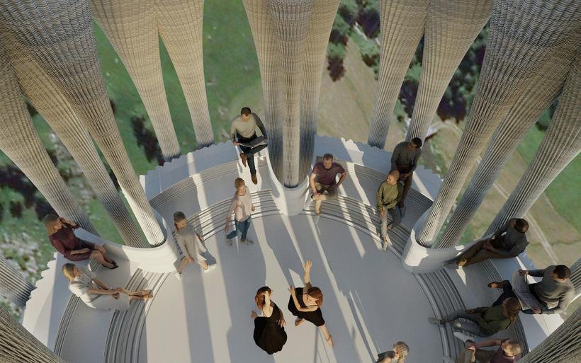 Der Turm wird einer der höchsten Bauten sein, die je im 3D-Verfahren von Robotern gedruckt wurden. Zusammen mit dem historischen Sockel, auf dem der Turm zu stehen kommt, beträgt die Gesamthöhe 29 Meter. Der Durchmesser an seiner breitesten Stelle beträgt 9 Meter. Der Theatersaal unter der Kuppel soll bis zu 45 Besucher fassen.