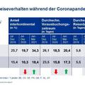 Obwohl es in Europa im vergangenen Winter durch steigende Coronafallzahlen erneut stärkere Einschränkungen gab, reisten Geschäftsreisende anteilig wieder längere Strecken. Knapp jeder fünfte Flugreisende war interkontinental unterwegs. Dagegen hielt die längere Abwesenheit vom Heimatort unvermindert weiter an. In den ersten drei Monaten dieses Jahres dauerten Dienstreisen im Schnitt 12,9 Tage.
