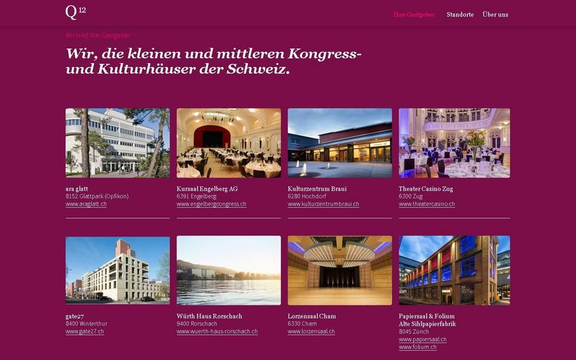 Mit Q12 tritt die Vereinigung von kleinen und mittleren Kongress- und Kulturhäusern der Schweiz (ehemals KMKK) seit Kurzem unter einem neuen Label im Veranstaltungsmarkt auf.