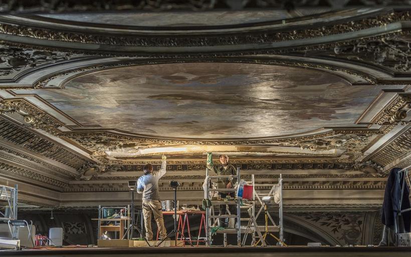Die Restaurierung der Grossen Tonhalle, eines der grössten Restaurierungsvorhaben in der Schweiz, verfolgte das Ziel einer Annäherung an den Zustand von 1895. Die Echtvergoldungen, die Stuckmarmoroberflächen der Säulen, die Kronleuchter und die auf Leinwand gemalten Deckenbilder aus dieser Zeit lassen den Saal heute wieder glänzen.