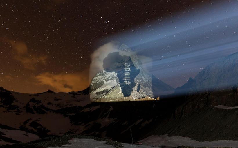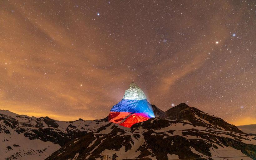 Im Auftrag der Walliser Tourismushochburg beleuchtete der Lichtkünstler Gerry Hofstetter seit dem 24. März täglich zwischen Sonnenuntergang und 23 Uhr das Matterhorn – als Zeichen der Hoffnung und der Solidarität in der Corona-Krise. Hofstetter verwandelt seit 1999 weltweit Gebäude, Monumente, Landschaften und Berge in temporäre Kunstobjekte.