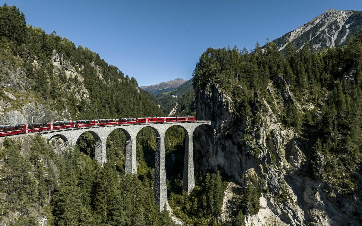 (Keystone-SDA) Die Strecke des Bernina Express ist die höchstgelegene ganzjährig betriebene Bahnverbindung über die Alpen, wie die Rhätische Bahn (RhB) anlässlich des 50-jährigen Jubiläums mitteilte. Von Chur geht es über historische Viadukte vorbei an den Gletschern des Engadins bis ins Bündner Südtal Puschlav und weiter ins norditalienische Tirano.