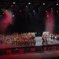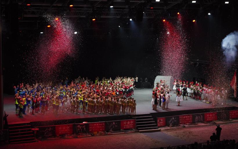Das Motto der Eröffnungsshow mit 700 Mitwirkenden hiess «Welcome» und erinnerte ein wenig an Eröffnungsfeiern von Olympischen Spielen oder Weltmeisterschaften. In bunter Folge wurden Show-Elemente wie Gesang, Musik, Tanz und Turndarbietungen durcheinander gewirbelt.